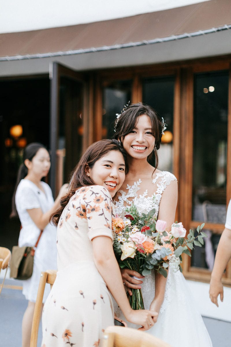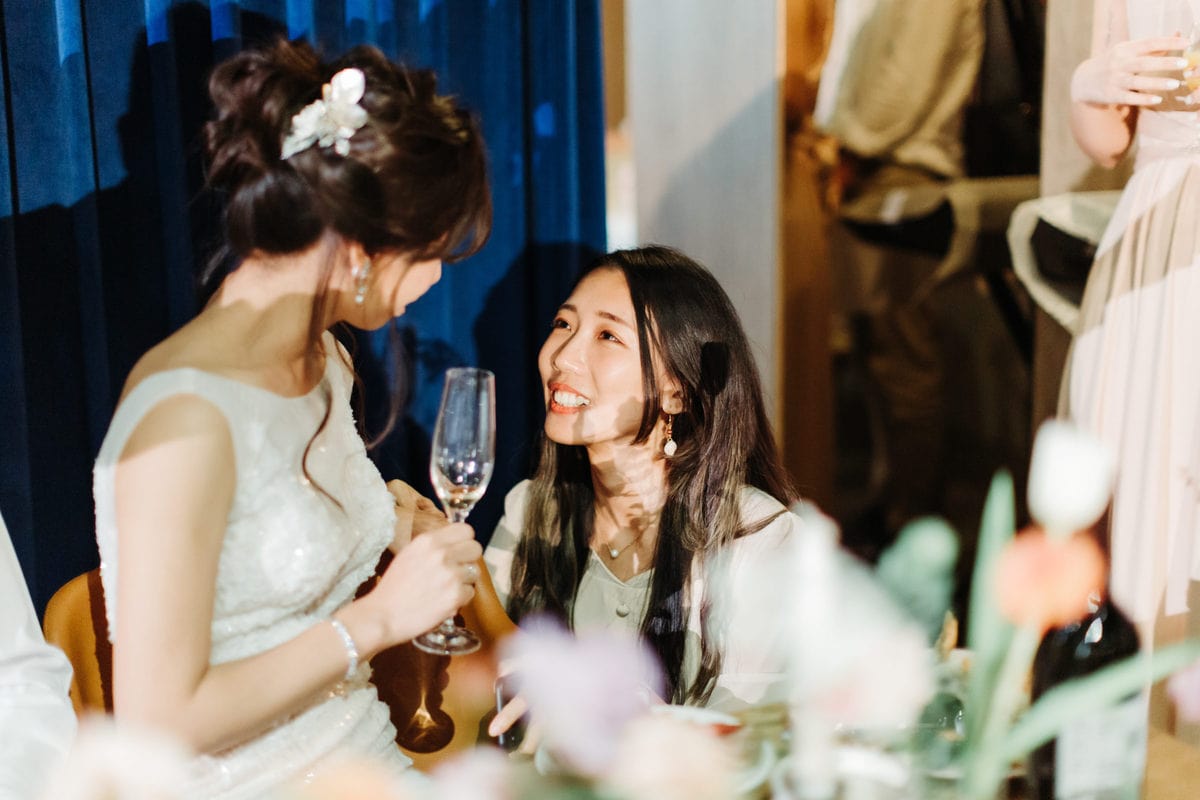 新娘在開場的婚禮致謝時,有些不好意思的說道:「抱歉還得讓大家再等等 ( 等待致詞後才能開餐 ),但等一下要提到的人真的都很重要……」。台下是歡呼、是掌聲。