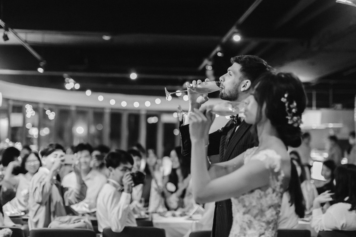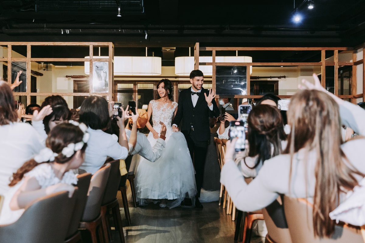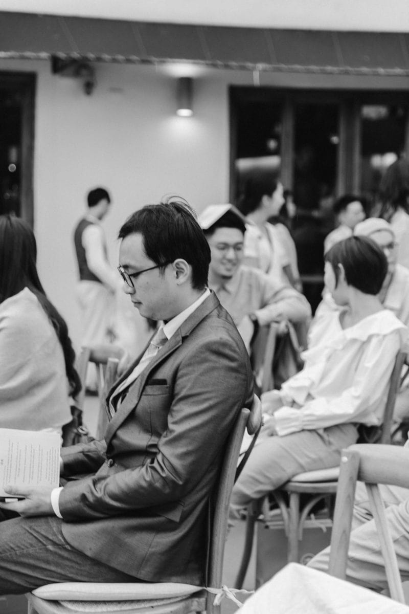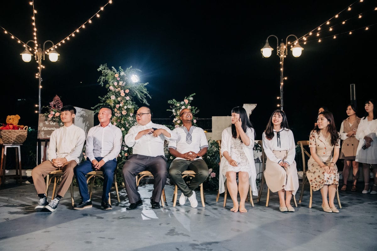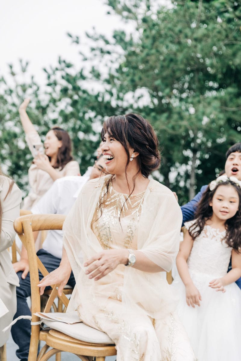 由於新郎與部分賓客沒有那麼熟悉中文,所以這場婚禮以中英文主持的方式進行。雙語主持並無提供即席口譯,口譯是另一個層級、另一種專業,也是我目前無法提供的服務。因此在籌備期,確認所有外文致詞、致謝的翻譯變得非常重要。有哪些橋段需要中英文講解?有哪些致詞需要翻成中文 / 英文?有哪些段落是逐字逐句翻譯,有哪些則是以英文總結即可。