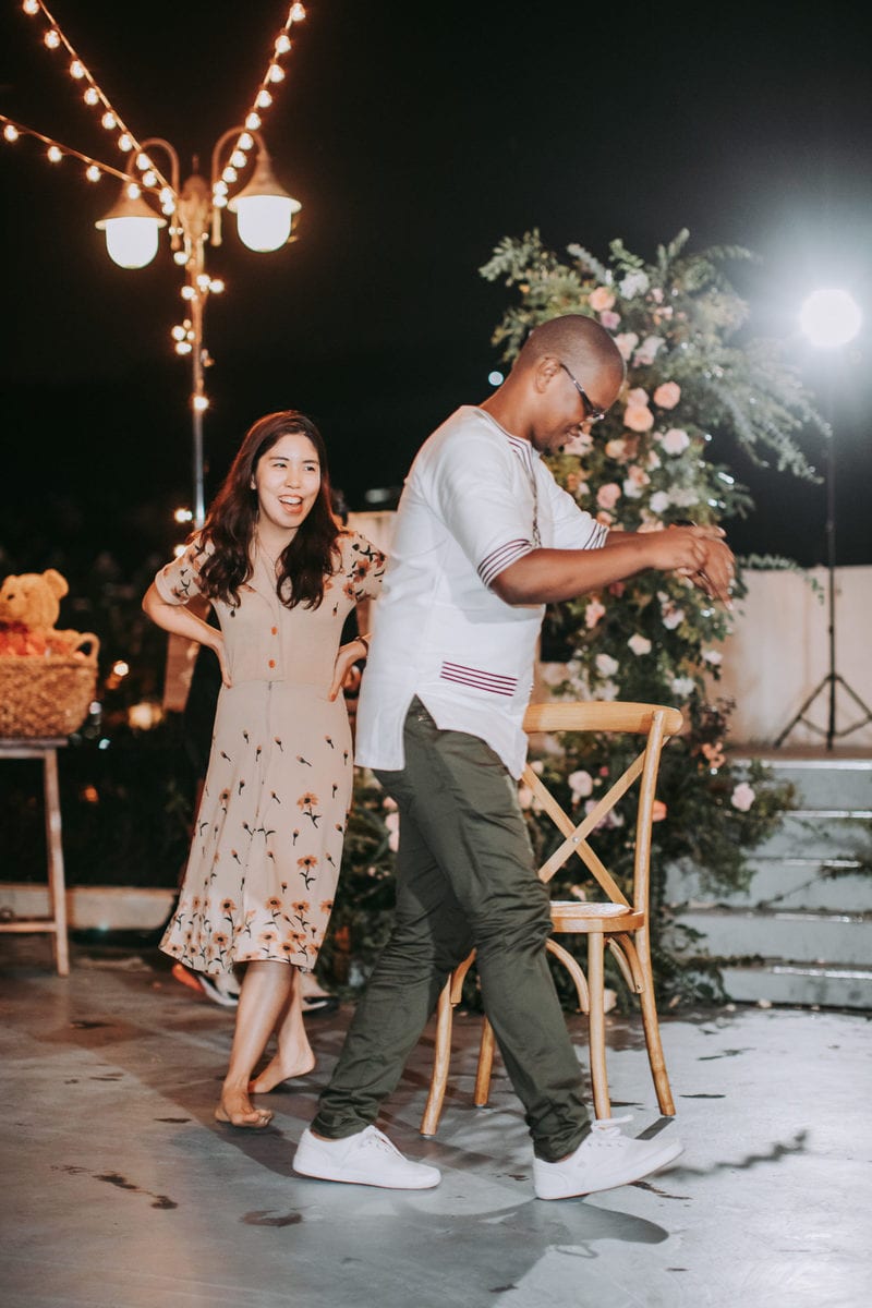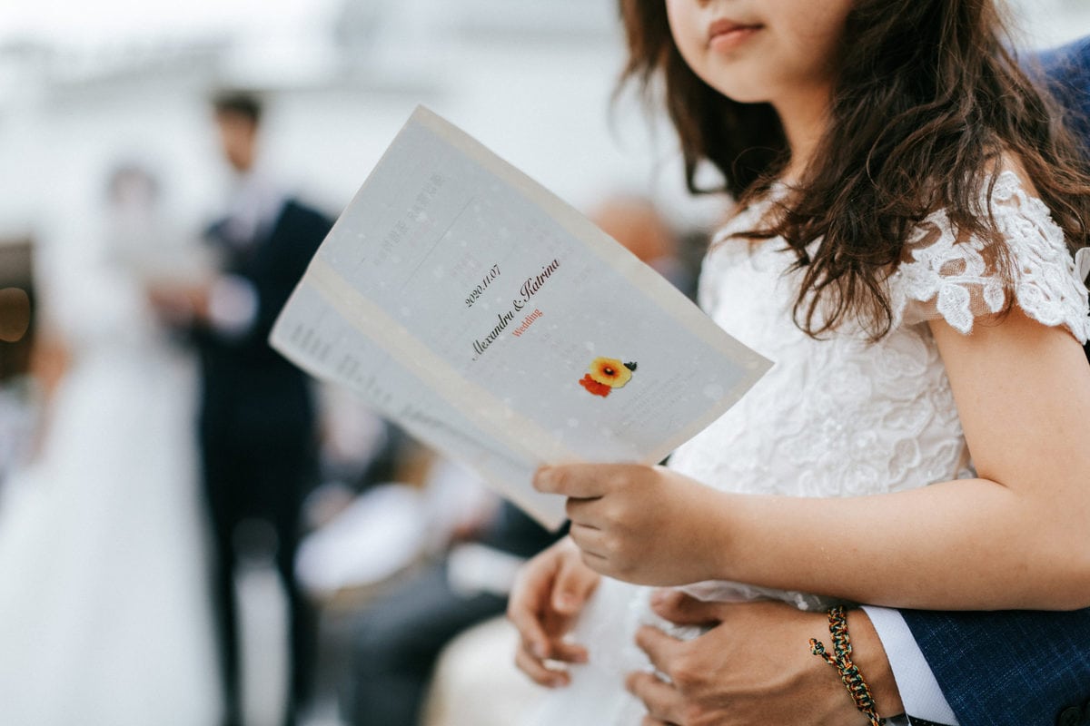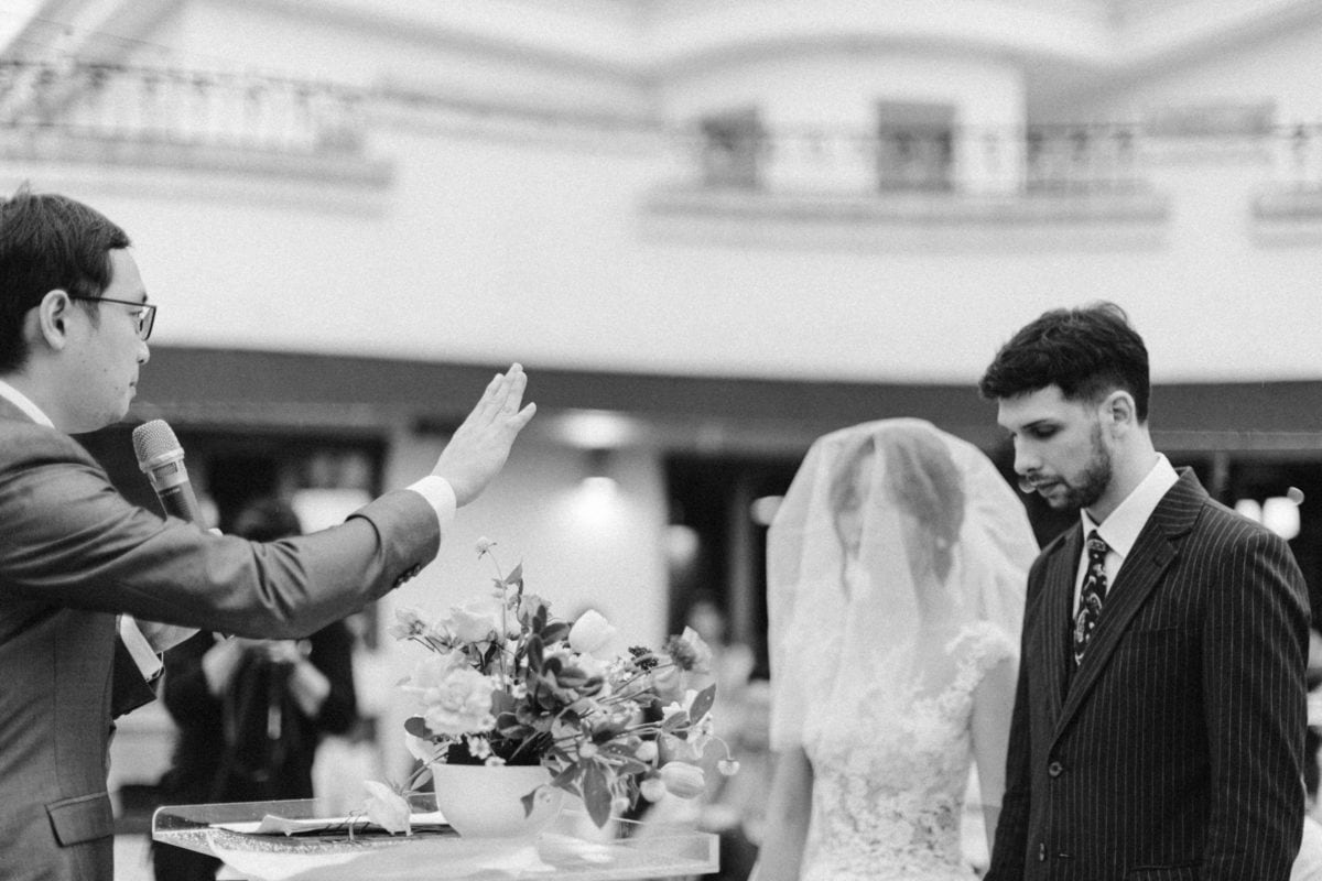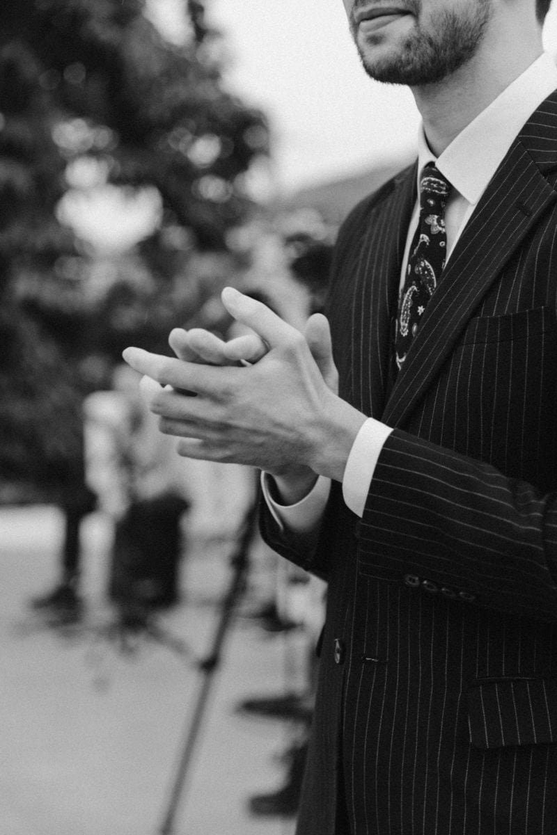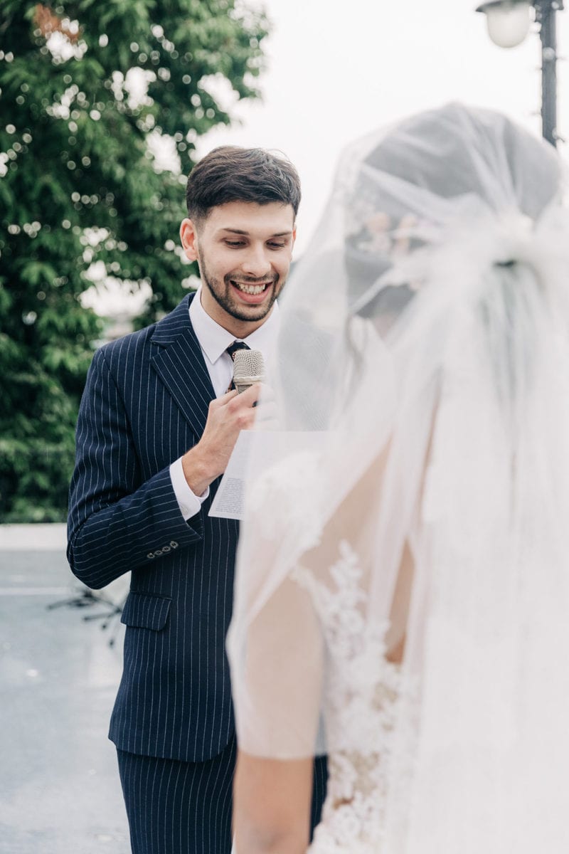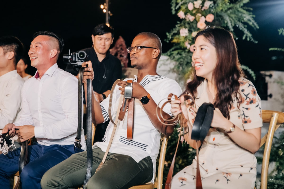 由於新郎與部分賓客沒有那麼熟悉中文,所以這場婚禮以中英文主持的方式進行。雙語主持並無提供即席口譯,口譯是另一個層級、另一種專業,也是我目前無法提供的服務。因此在籌備期,確認所有外文致詞、致謝的翻譯變得非常重要。有哪些橋段需要中英文講解?有哪些致詞需要翻成中文 / 英文?有哪些段落是逐字逐句翻譯,有哪些則是以英文總結即可。