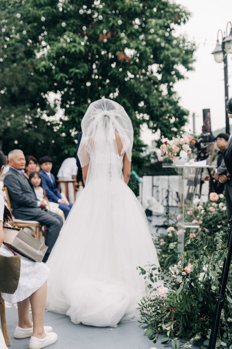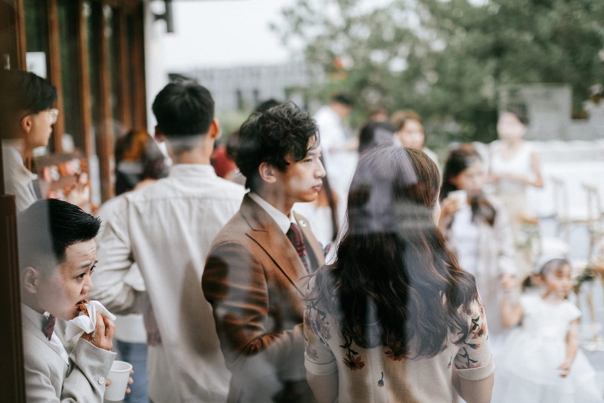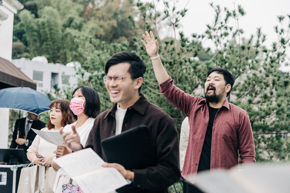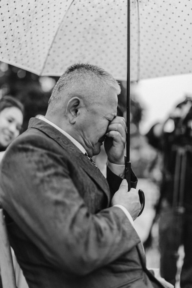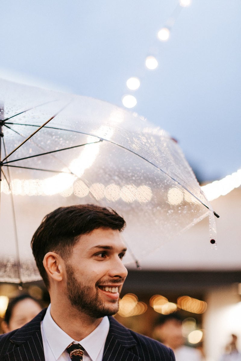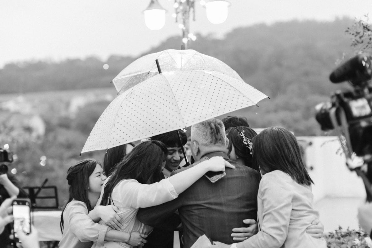 當晚天氣不穩定,證婚時飄起了毛毛細雨。雖然已盡量的加快儀式進行,但仍有許多環節無法省略。現場,沒有賓客抱怨,大家齊聲唱著詩歌,儘管歌詞本已被雨水浸潤。一直到最後儀式結束時,原訂在戶外的桌椅需移動到室內重新打桌。得讓賓客再等待一陣子才能用餐,都不見任何不悅的神情。