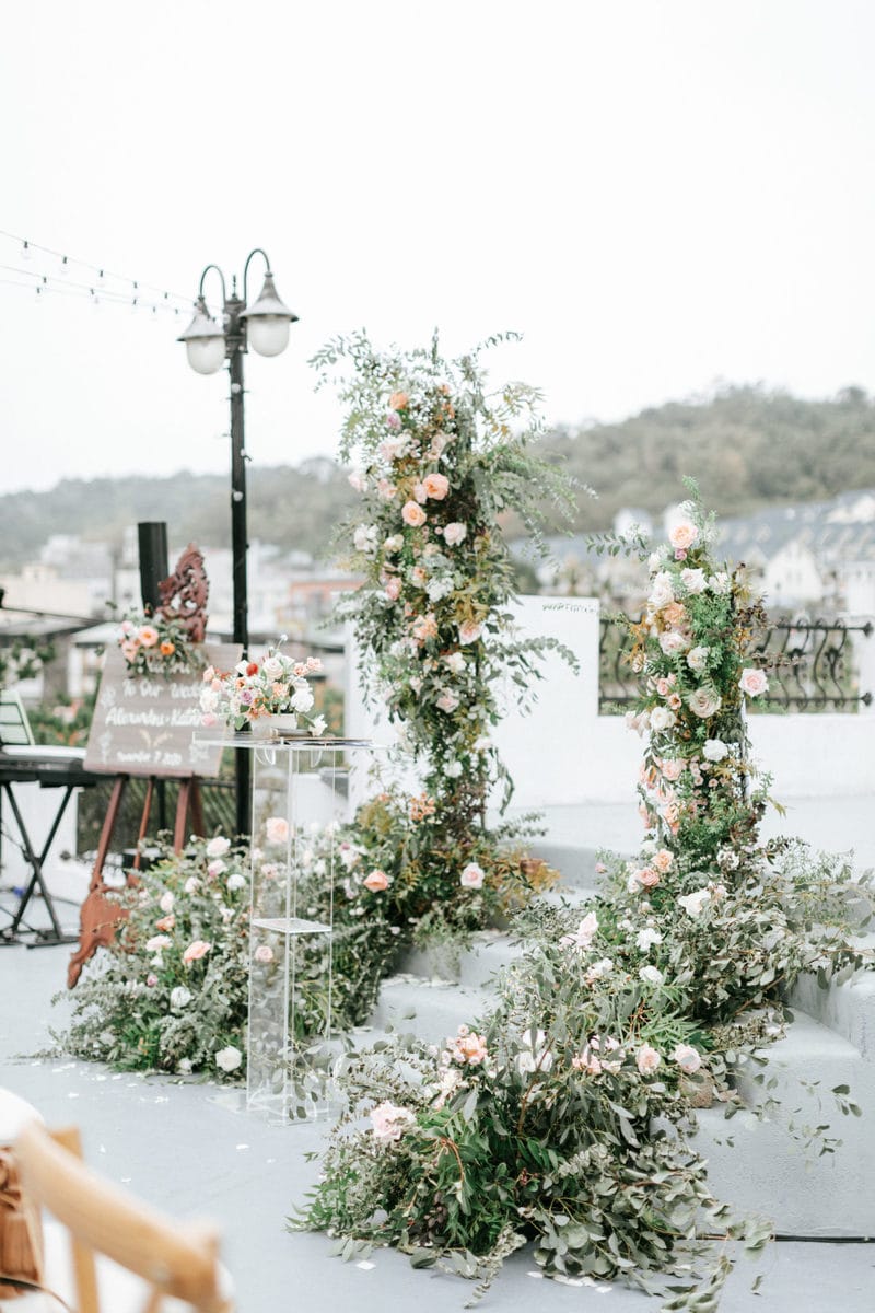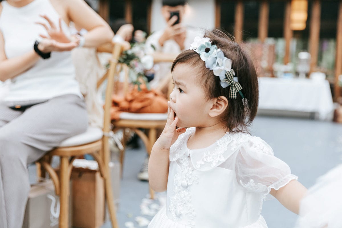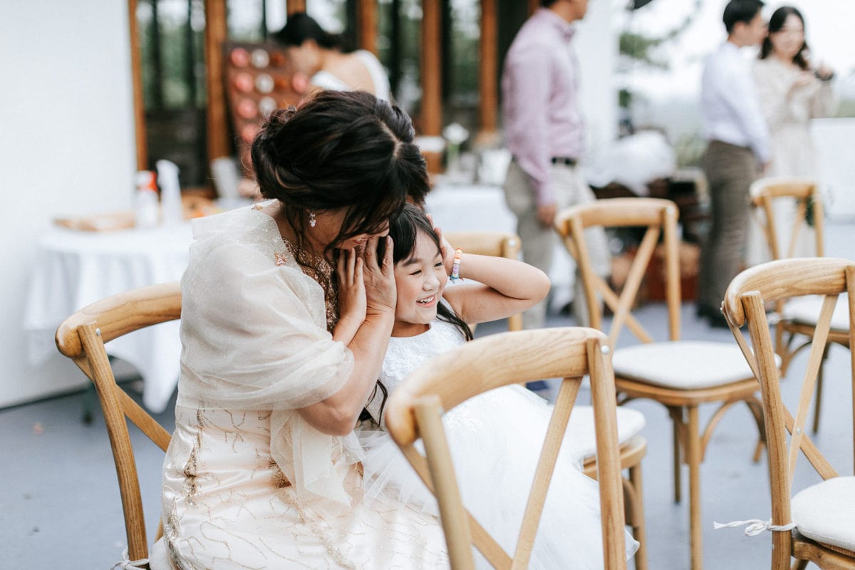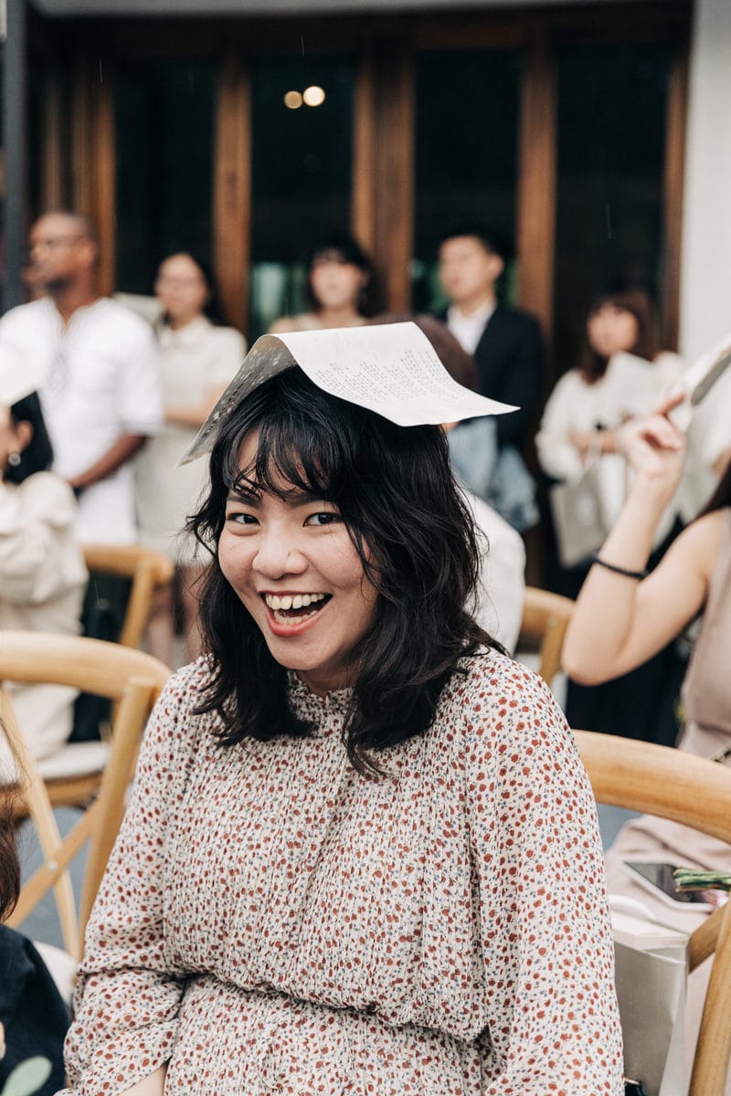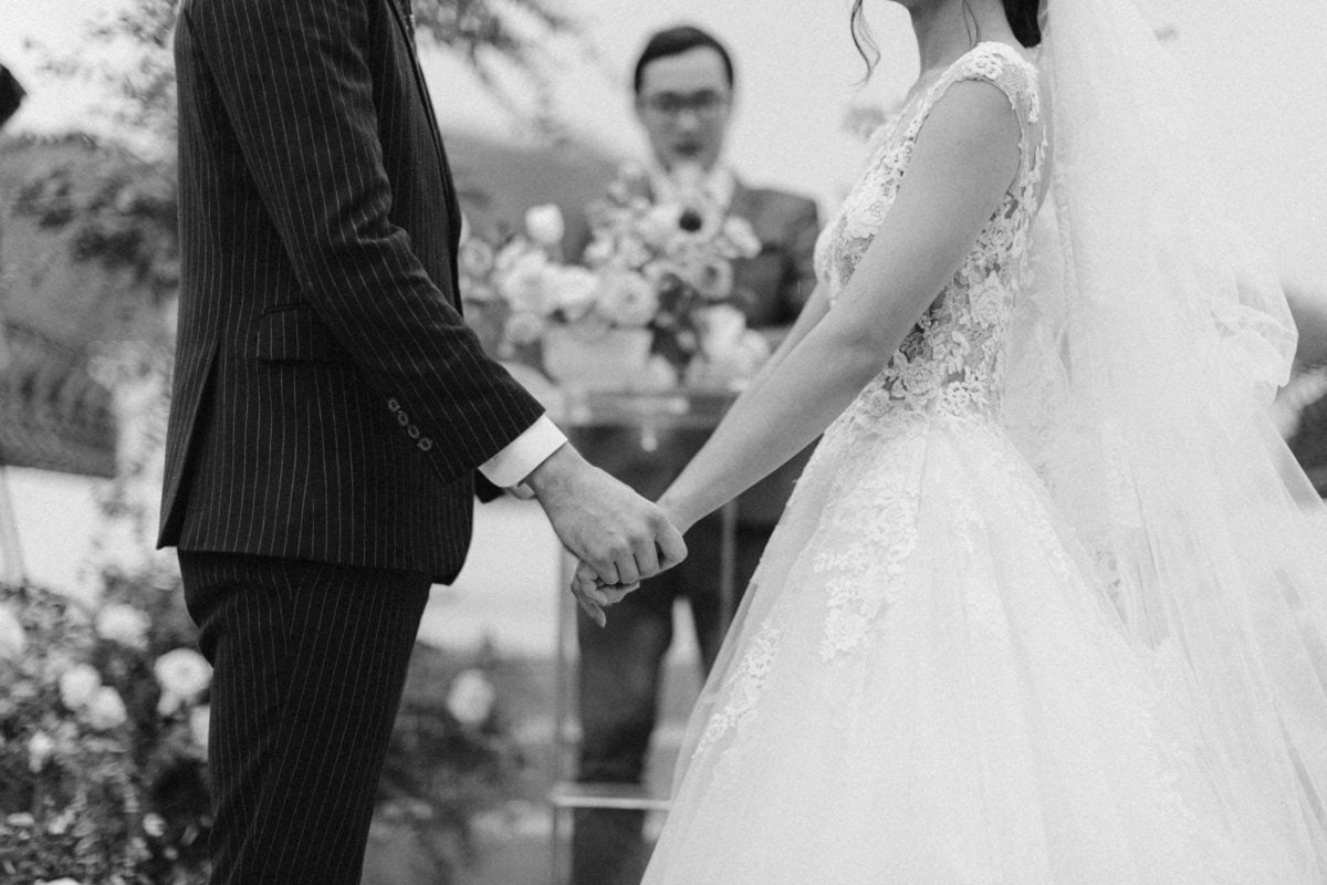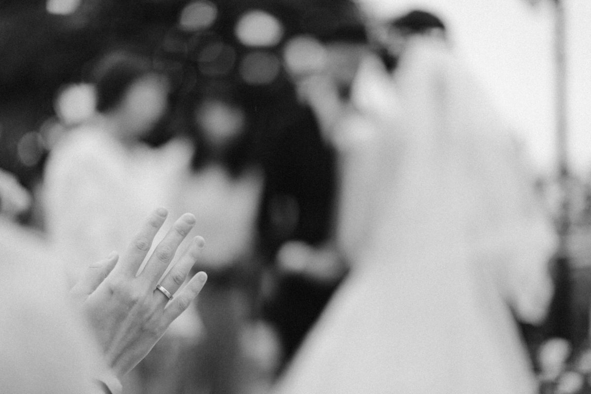 當晚天氣不穩定,證婚時飄起了毛毛細雨。雖然已盡量的加快儀式進行,但仍有許多環節無法省略。現場,沒有賓客抱怨,大家齊聲唱著詩歌,儘管歌詞本已被雨水浸潤。一直到最後儀式結束時,原訂在戶外的桌椅需移動到室內重新打桌。得讓賓客再等待一陣子才能用餐,都不見任何不悅的神情。